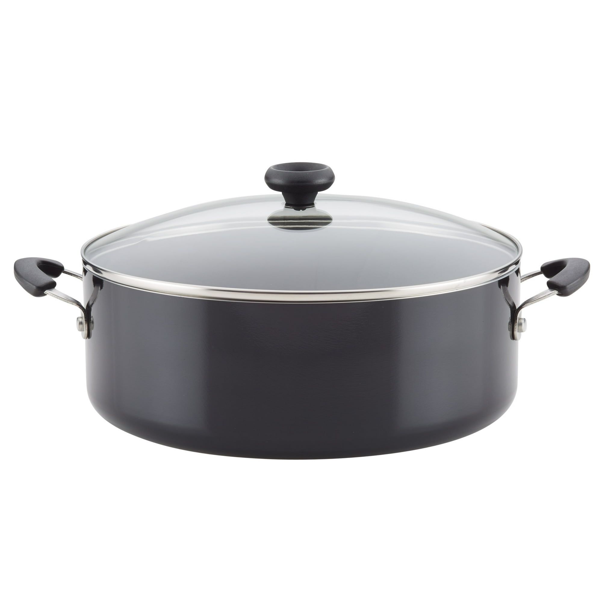 Effortless Nonstick: Features long-lasting nonstick interior for excellent food release, making everyday cooking and cleanup easier.Efficient Heating: Constructed from heavy-duty aluminum that heats quickly and evenly, reducing hot spots for consistent cooking results.Secure Handling: Equipped with sturdy, contoured handles that are double-riveted for a confident and secure grip.Versatile Oven: Oven safe to 350 degrees Fahrenheit, allowing for flexible cooking options from stovetop to oven.Convenient Monitoring: Includes a glass lid with an easy-to-grasp knob, enabling monitoring of the cooking process while sealing in heat and moisture.Simple Cleanup: Designed to be dishwasher safe, providing convenient and hassle-free cleaning after use.Generous Capacity: An 8-quart capacity makes it ideal for preparing family-sized meals such as soups, chili, or pasta.