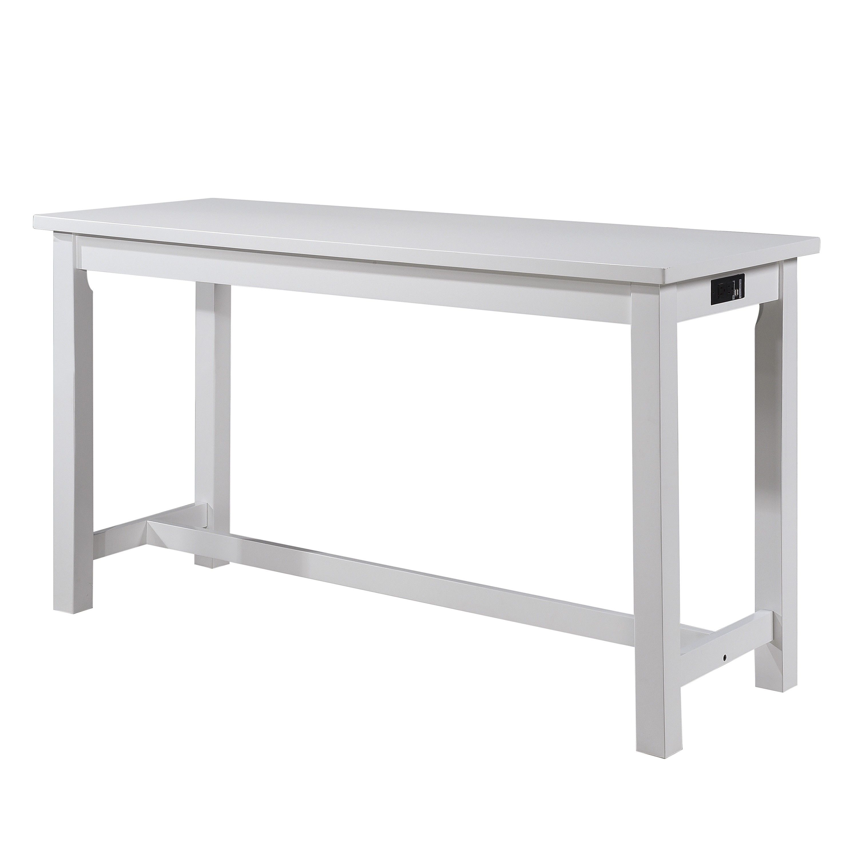 The elevated dining experience that the Connected Collection provides will fuel your devices battery life while you fuel yourself. The convenience of built-in USB ports and A/C power turns your casual dining area into an efficient recharging station. The four-piece pack of the Connected Collection includes a counter height table and three barstools. A single drawer allows for discrete storage on the tables side apron. As a neutral pallet for your decorative preference, the collection features a white finish over ash veneer, with the neutral gray tone of the barstools seats providing subtle accent.PRODUCT DIMENSIONS:TABLE: 66.25" x 23.75" x 36.5"Apron to floor: 31.75"Distance between legs from the shorter side: 16"STOOL: 17" x 12" x 24.25"Seat Depth: 12"Seat Height: 24.25"Seat Height: 24.25"Listing Includes: 4pc Counter Height Set (Counter Height Dining Table and 3 Counter Stools) Only.Simple Assembly Require